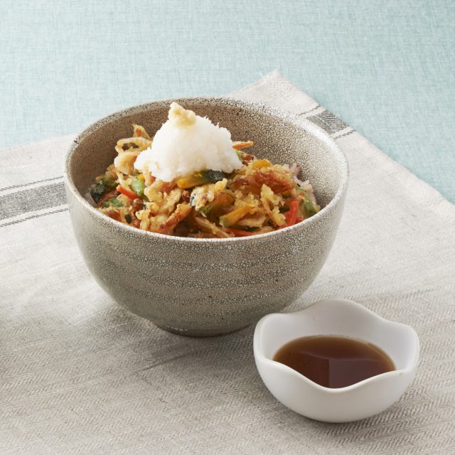 だしは、鹿児島産鰹節、むろあじぶし、九州産干し椎茸、いわし煮干、昆布の5種類を使用。独特のコクがあって麺類によく合うだし「むろあじ節」に昆布や鰹節をかけ合わせ、さらに干し椎茸をたっぷり加えることで、香り高く、コク深い味わいを実現しました。