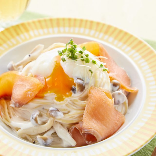 スモークサーモンとオクラの冷製パスタ
