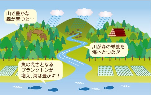 ※雄武漁協では、森にシラカバなどの苗木を植えています。森の環境を整えることで、川が豊かになり、それがオホーツクの海を豊かにすることにつながります。