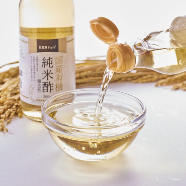 「自然派Style国産有機純米酢」(自然派Style国産オーガニックシリーズ)は、生協の産直有機米を原料にお酒を造り、その後ゆっくり時間をかけて自然にアルコール分を酢に変えていく昔ながらの製法「静置発酵」にこだわって醸造したお酢です。