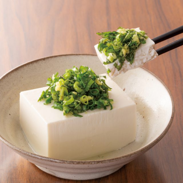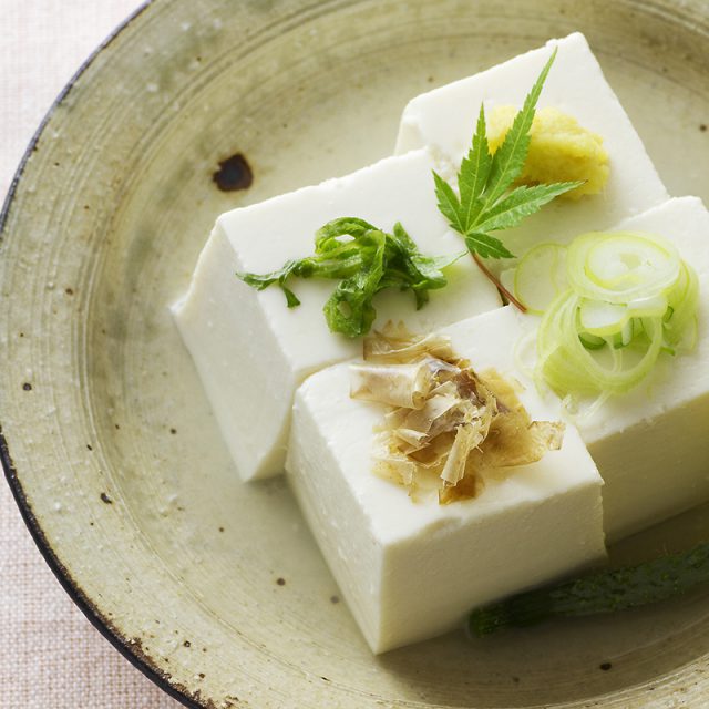 大豆は愛知県産大豆に限定。凝固剤は昔ながらのにがりを使用しています。ほんのり広がる甘みは、大豆を多めに使うからこそ出せるもの。まずは塩で、その甘みを実感してほしいお豆腐です。