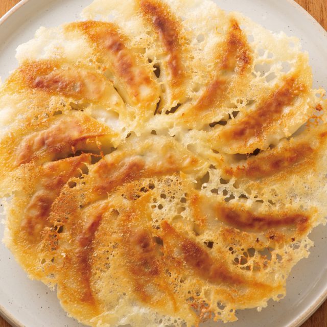 皮は国産小麦100%。少し厚目のもっちり皮のおかげで、フライパンの上で扱いやすく、焼き上がりはパリッパリ。憧れの羽根つき餃子も失敗知らず♪ 「餃子を焼くのって楽しい」。きっとそう感じられますよ。