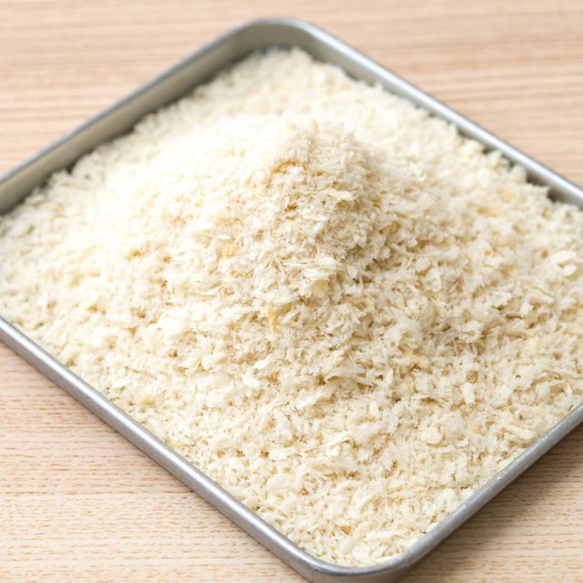 サクサク食感を守るため、湿気を防ぐチャックシール付きの袋でお届けします。エビフライ、コロッケ、カツなどに使えば、パン粉の粒が立ち、揚げ物を一層おいしく美しく見せてくれます。グラタン等のトッピングや、ハンバーグ、ミートボール、しゅうまい、餃子のつなぎにもどうぞ。