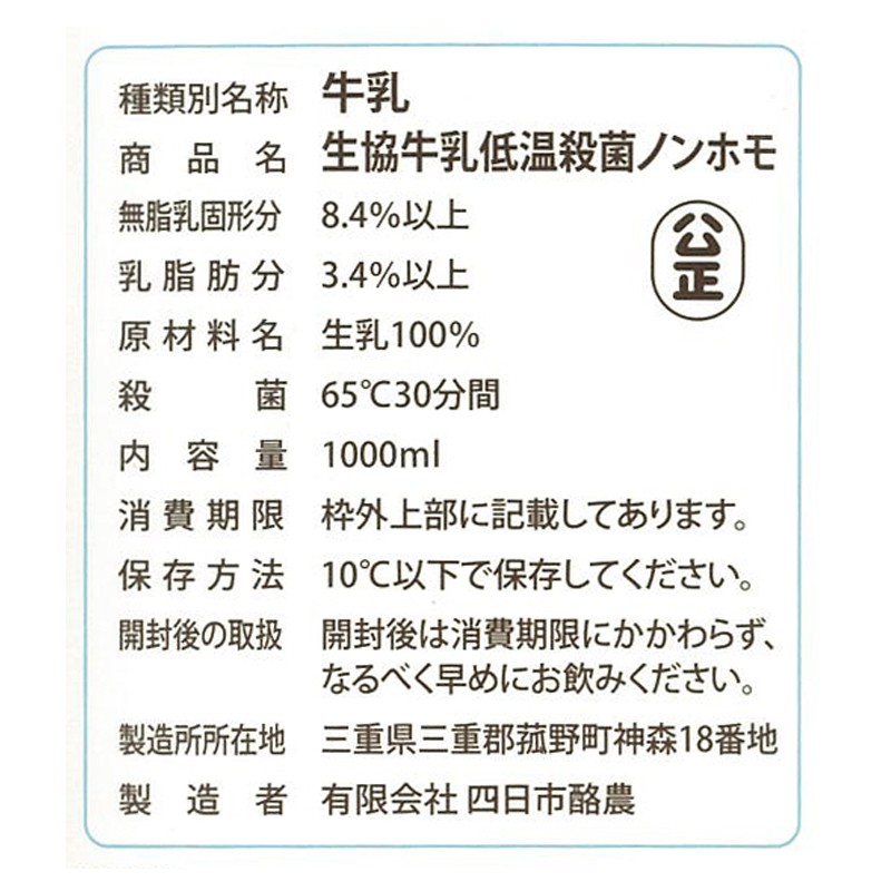 | 製造所 | 有限会社 四日市酪農 〒510-1231 |