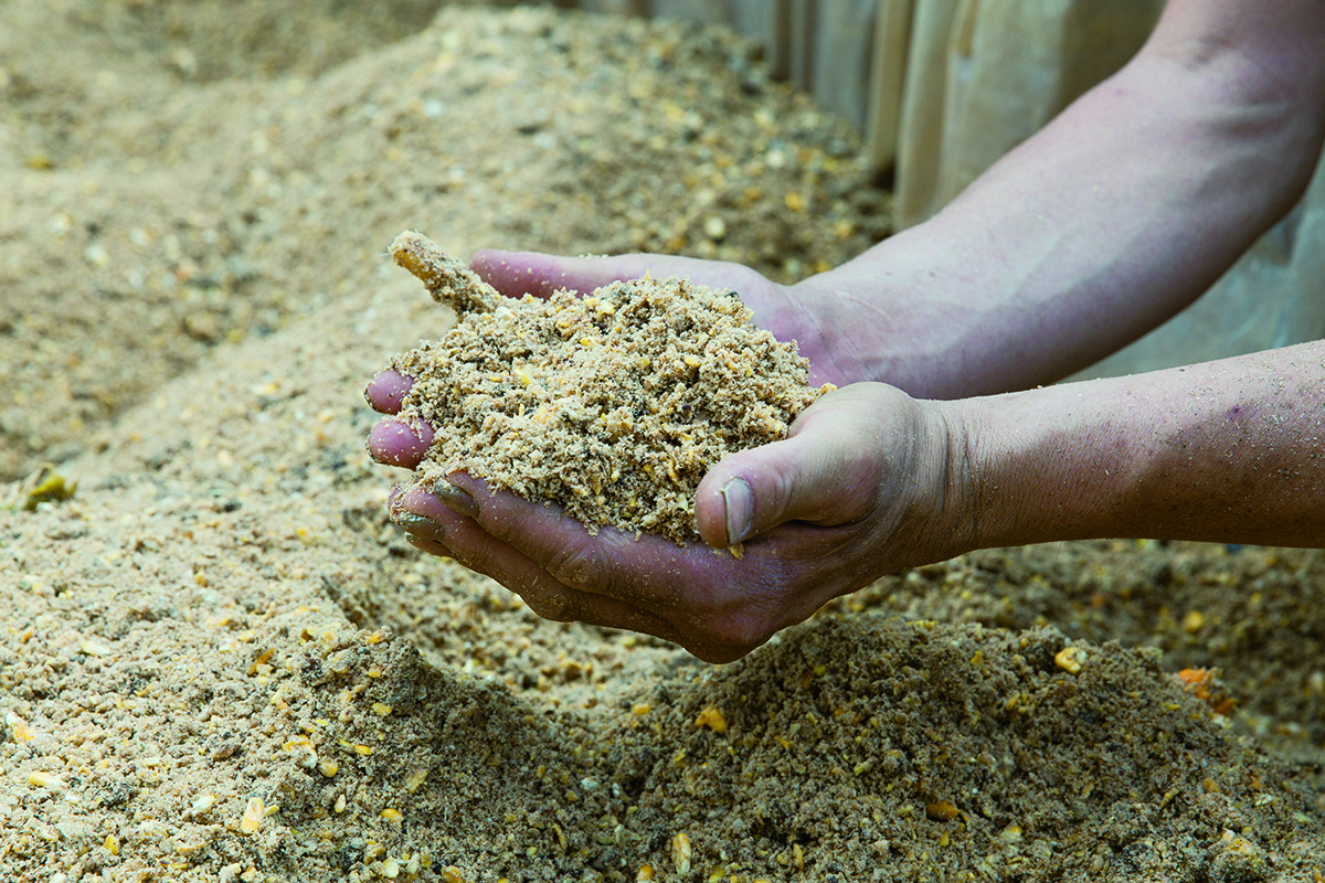 乳牛が毎日食べるエサの品質は、毎日搾る牛乳の品質に大きく影響します。モーちゃんは、稲わらや青葉、乾燥牧草などの「粗飼料」と、とうもろこし、大麦などの穀類、油かすなど栄養成分の多い「穀物飼料」で育ちます。すべて遺伝子組み換え混入防止管理済みなので安心面もしっかり。