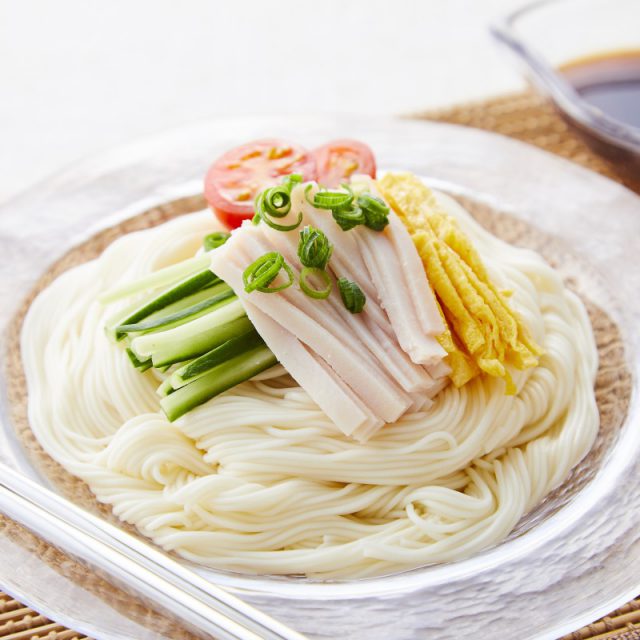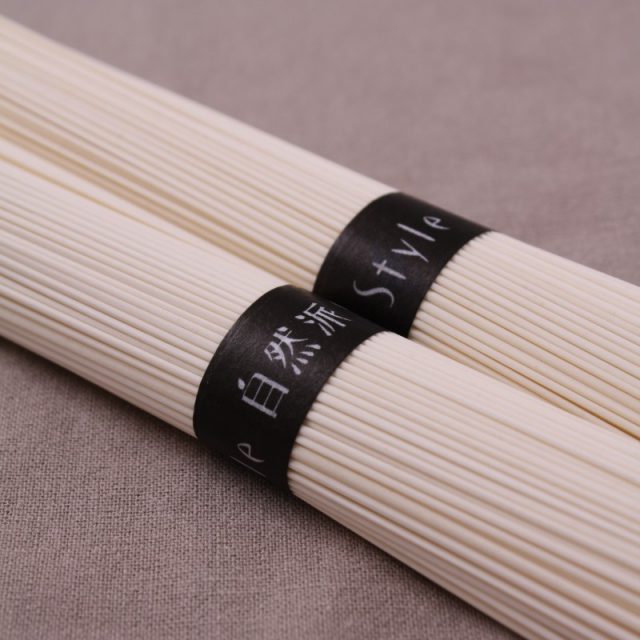 国産小麦粉、メキシコの天日塩を平釜でゆっくり炊き上げ国産にがりを加えた塩、国産なたね油を使用したそうめんです。