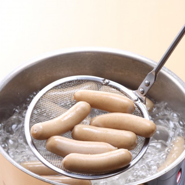 一般的なウィンナーは冷凍の輸入肉が使われることが多く、解凍時に落ちてしまう鮮度や旨みを補うために、結着力を高めるリン酸塩、肉の色をよくする発色剤、うまみを補強する化学調味料などがたくさんの食品添加物が使われます。