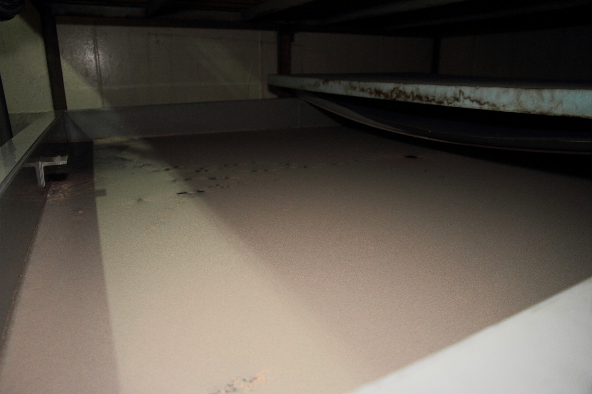 (写真:お酢の原料となるお酒の上を酢酸菌が覆います。じっくり時間をかけることでうまみとコクが引き出されます。)