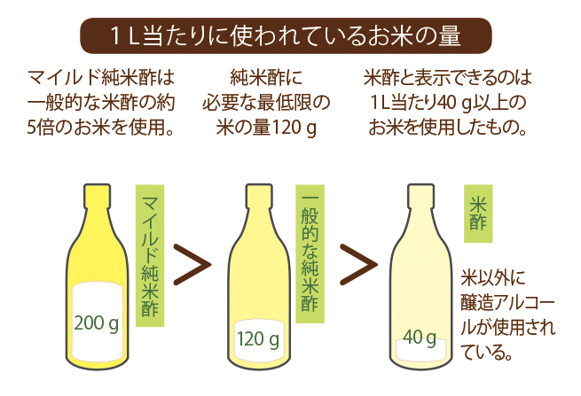 ※一般のJAS規格の米酢は1L当たり米40g以上、醸造用アルコールの使用も認められている。
