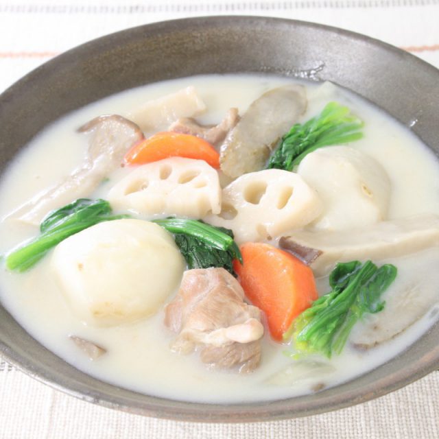 根菜とほうれん草のシチュー