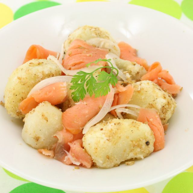 新じゃがとスモークサーモンのごま風味サラダ