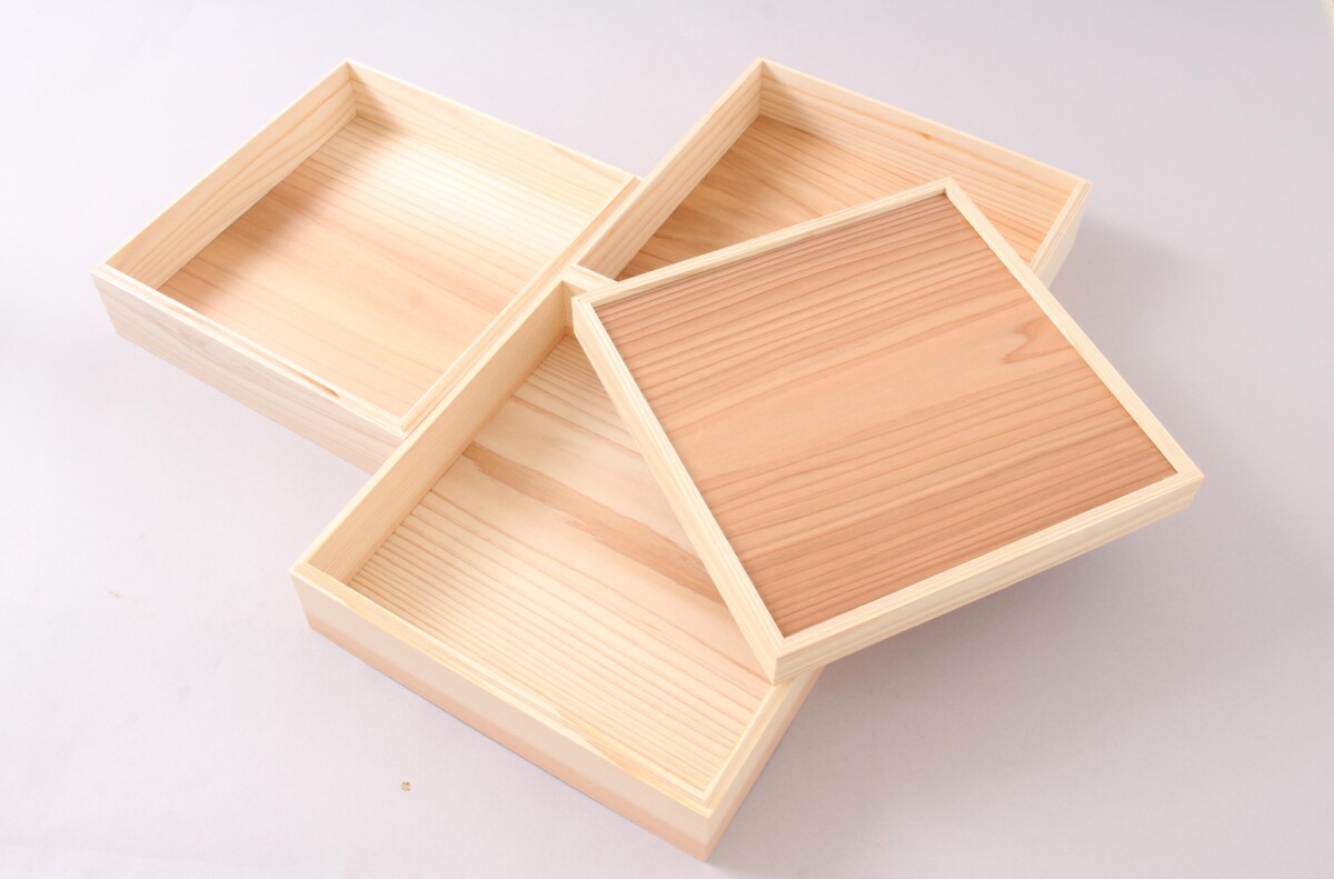 「自然派Style三段重おせち」のお重には国産杉(間伐材)を使用しました。未来の森を育むために計画的に間引きされた間伐材を有効活用したサスティナブルな容器です。きれいな木目に、杉の良い香りがします。