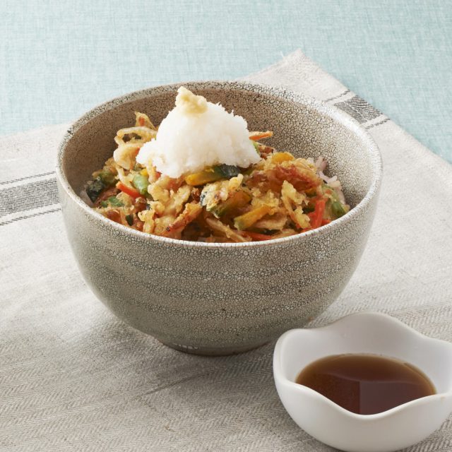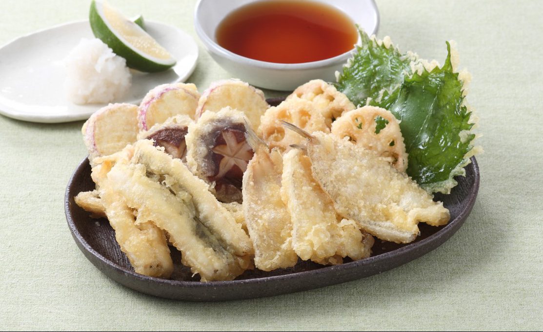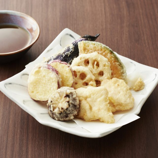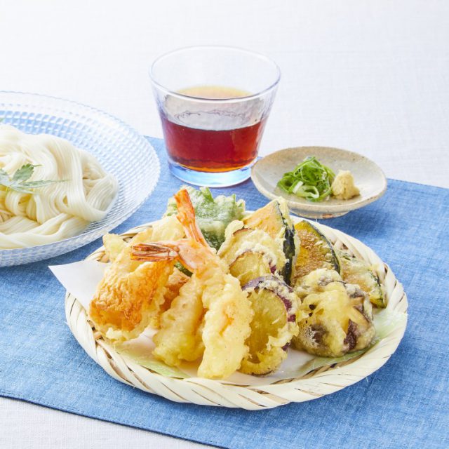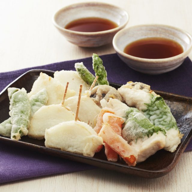 具材には先に自然派Styleてんぷら粉を軽くまぶしておき、その後天ぷら粉を溶かした液に浸し、約180度の油で揚げてください。