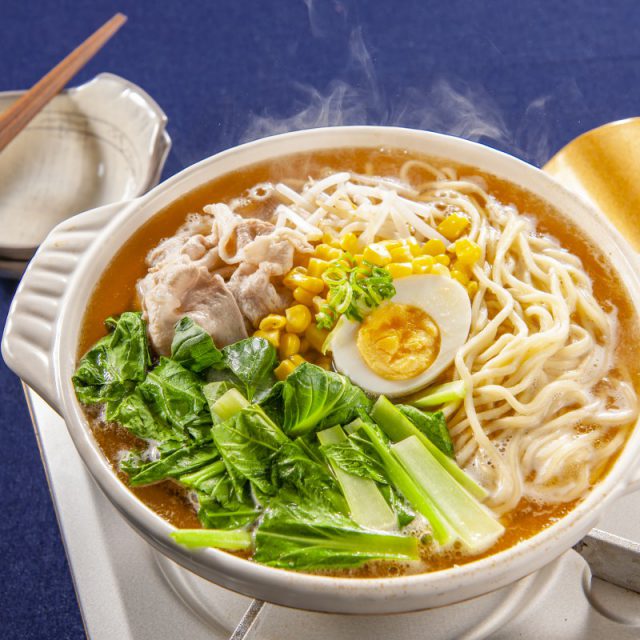 ねぎの香りを移した香味油が食欲をそそります。家族で楽しめるラーメン鍋!