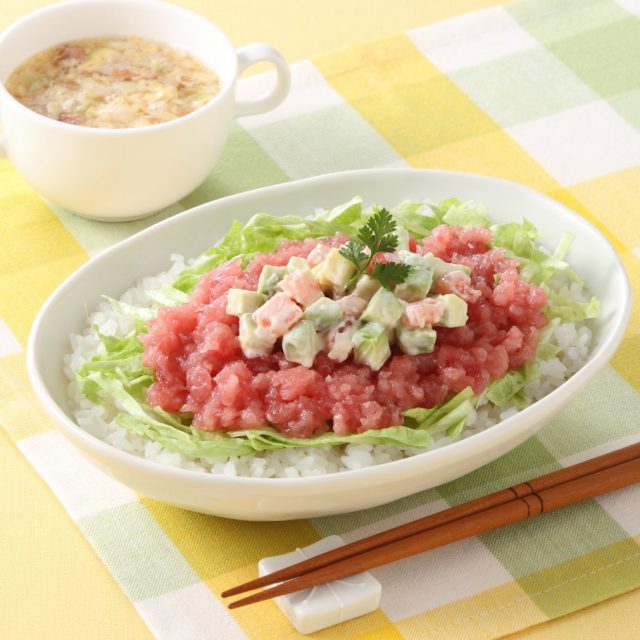 忙しい時にも便利!解凍してご飯に盛りつけるだけでネギトロ丼!