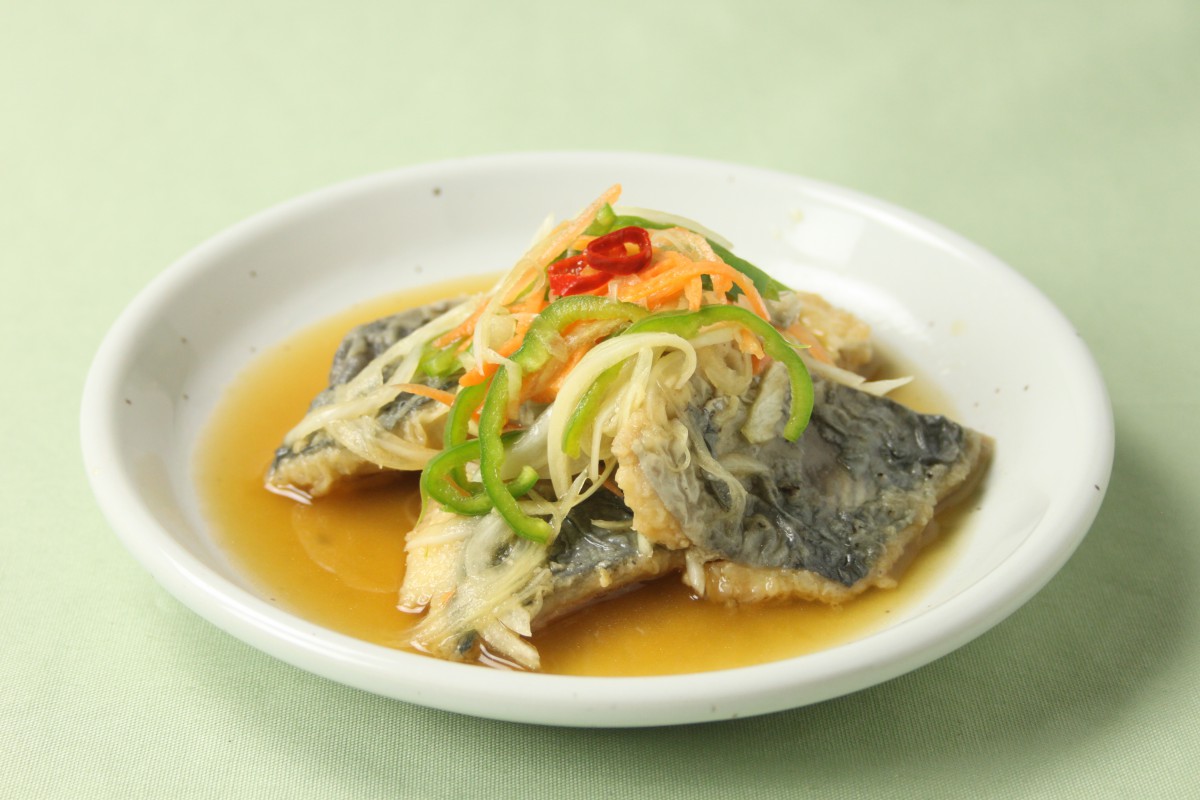 さわらはフライパンで揚げ焼きにし、自然派Style万能つゆを使った調味料に漬け込みます。