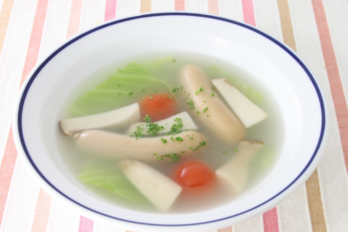 - 鍋に油を熱し、エリンギとキャベツを入れて中火で炒める。