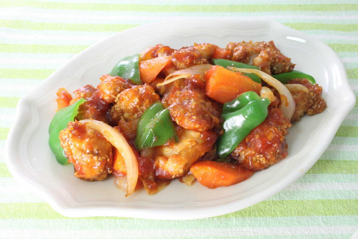 鶏ムネ肉でつくる酢豚風。ゴマも入れて香ばしく仕上げます。