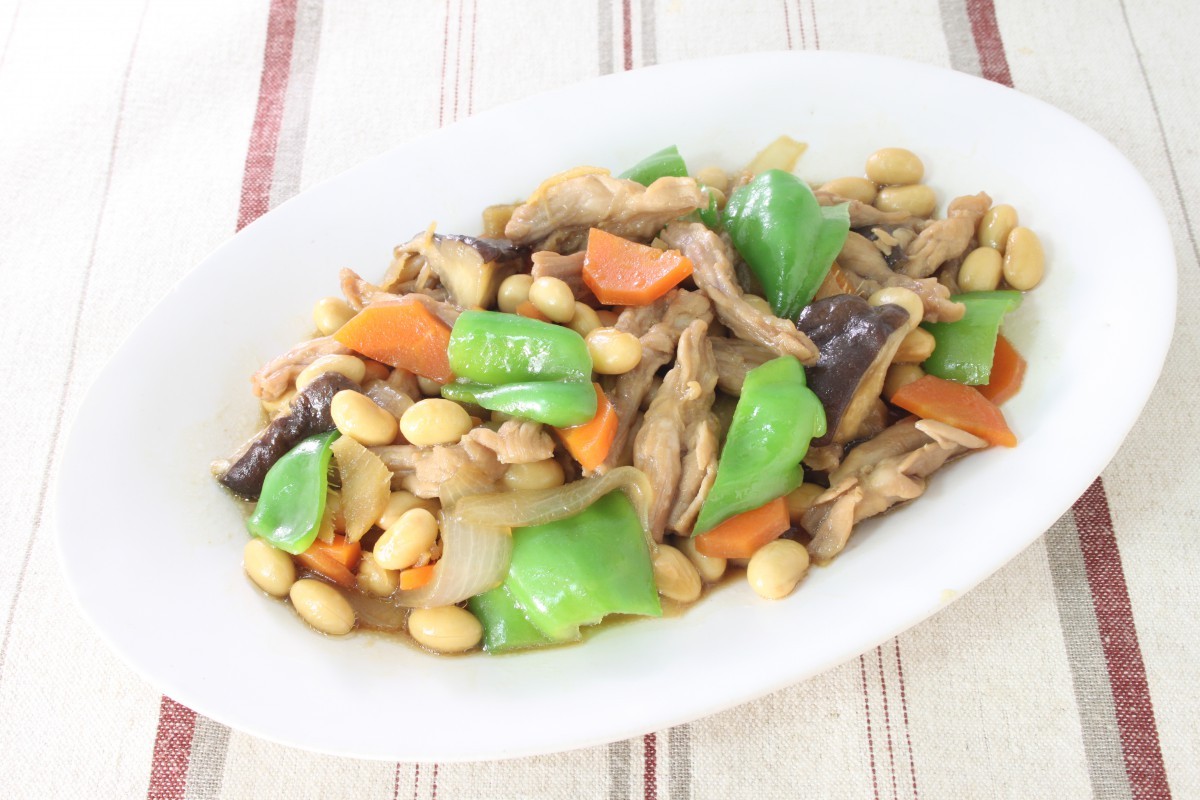 大豆と鶏肉の炒り煮