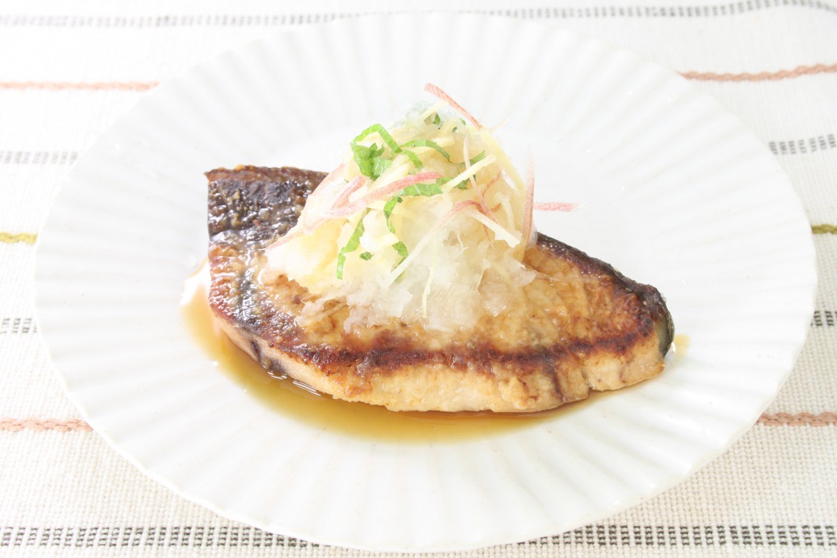 - 器にぶりを盛り、合わせた香味野菜をのせ、残りのぽん酢をかけていただく。