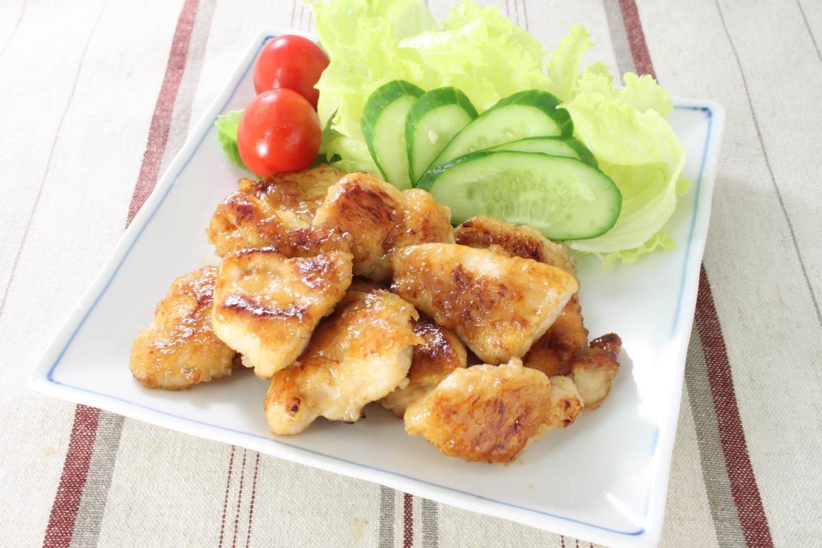 - 鶏肉を食べやすい大きさにそぎ切りにする。