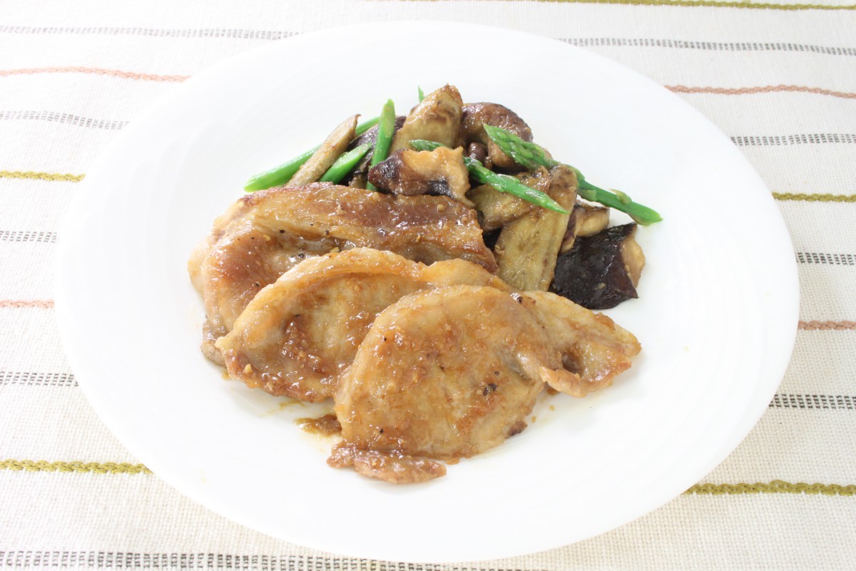 油大さじ1/2をたし、豚肉を並び入れて両面をこんがりと焼いて火を通す。