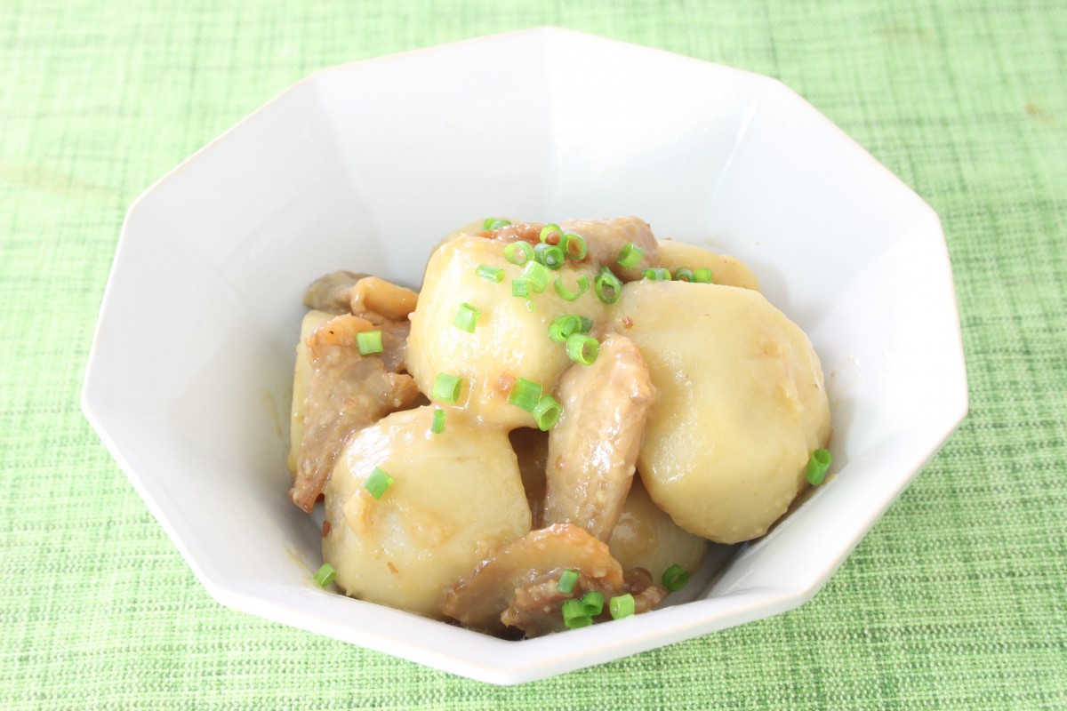 - 里芋は皮をむいて一口大に切り、少量の塩(分量外)でもみ、水で洗い流す。