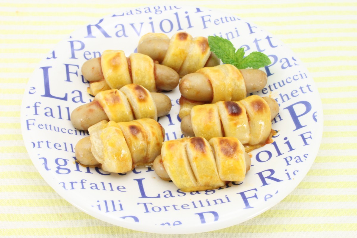 自然派Styleポークウィンナーに巻き付ける。 - クッキングシートを敷いた天板に、巻き終わりを下にして並べ、卵黄を薄く塗りオーブントースターで10分程度焼く。(様子を見ながら途中で返す)