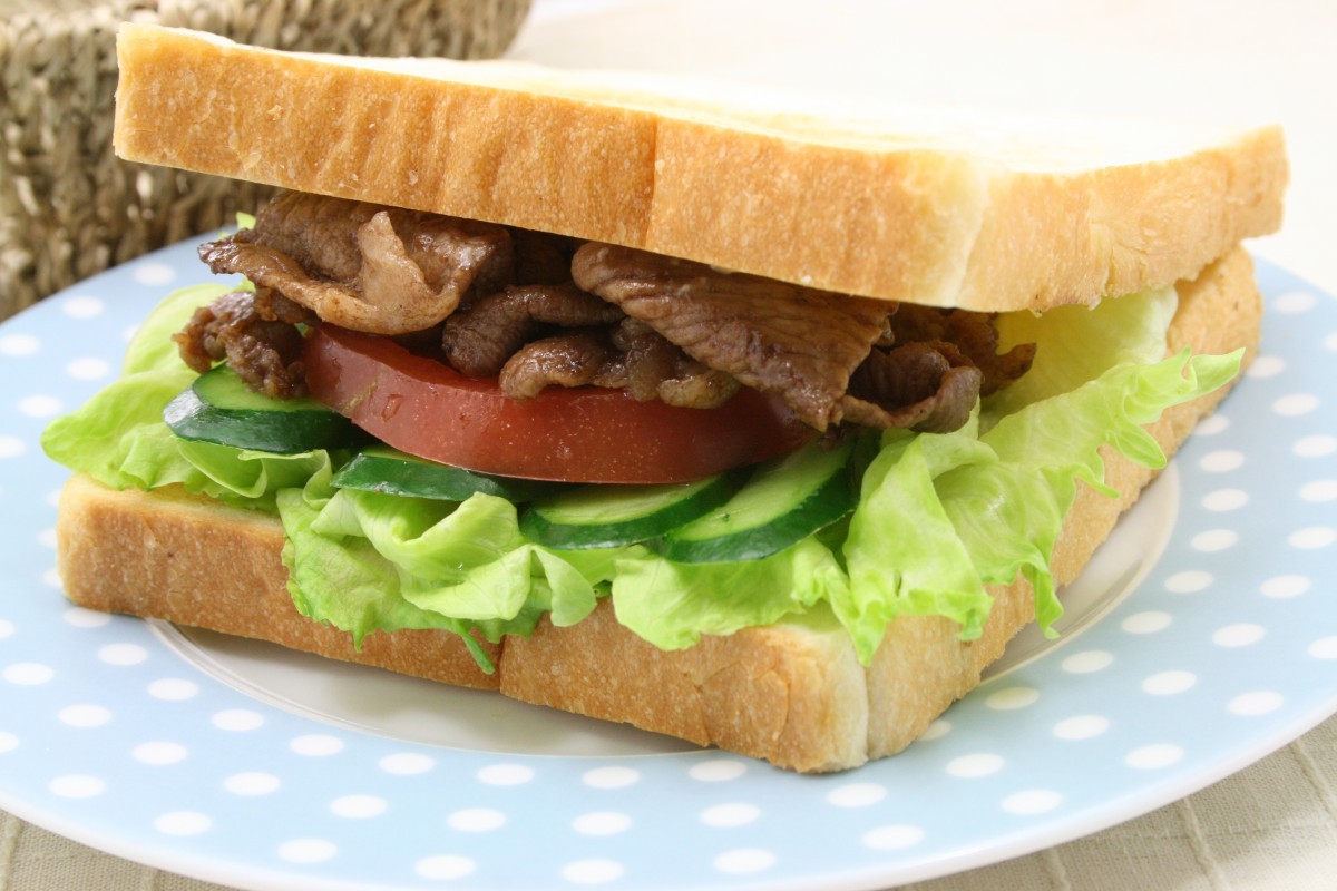 - トマトは輪切り、きゅうりは斜めにスライスする。