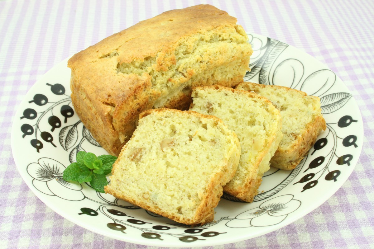 - ②にバナナを入れてゴムベラで混ぜ合わせ、ホットケーキミックス、くるみ、溶かしバターを加えて切るようにして混ぜ合わせる。