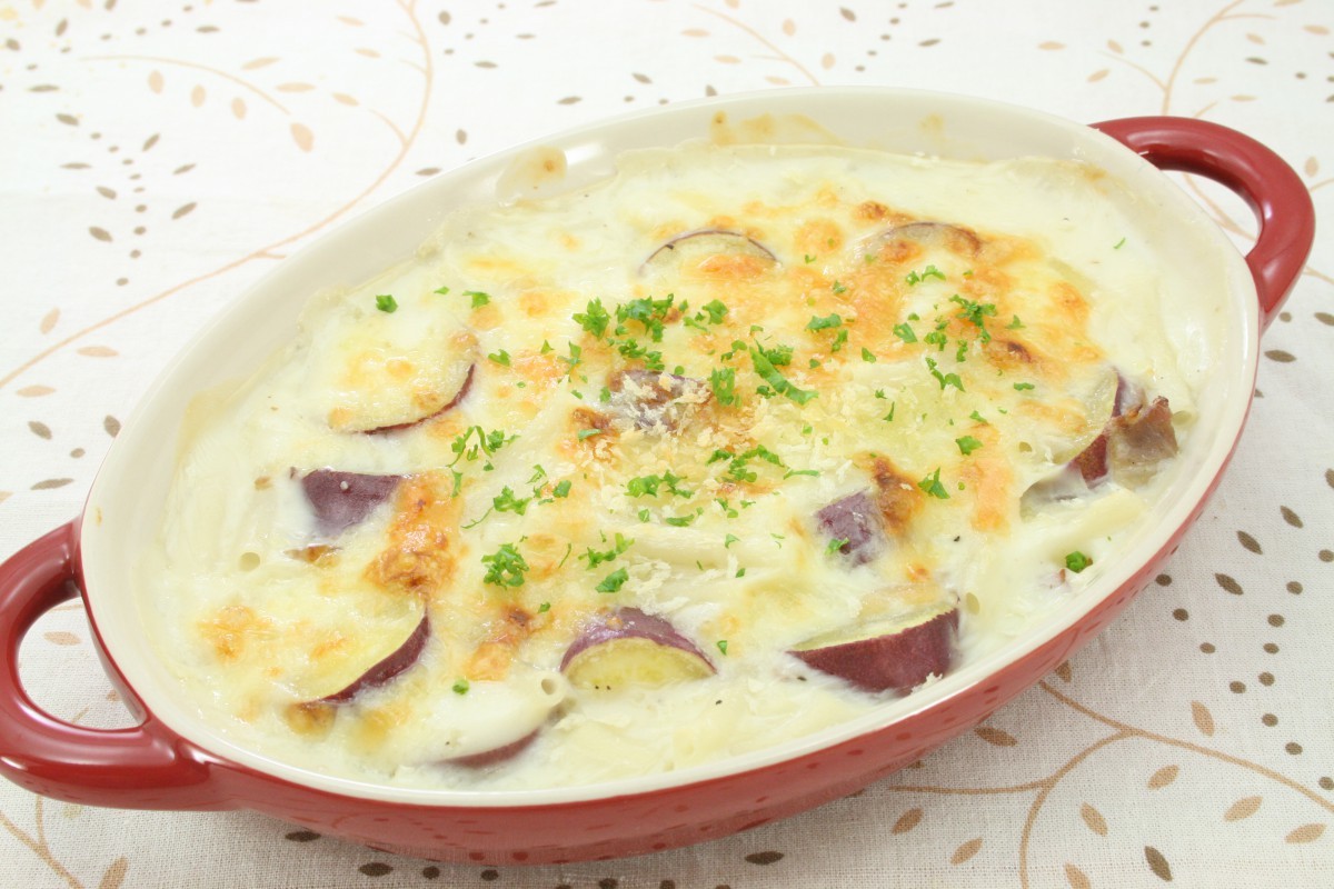 マカロニを入れて混ぜる。 - 耐熱容器に②を入れてシュレッドチーズ、自然派Styleマムのパン粉をのせ、オーブントースターでこんがり焼く。
