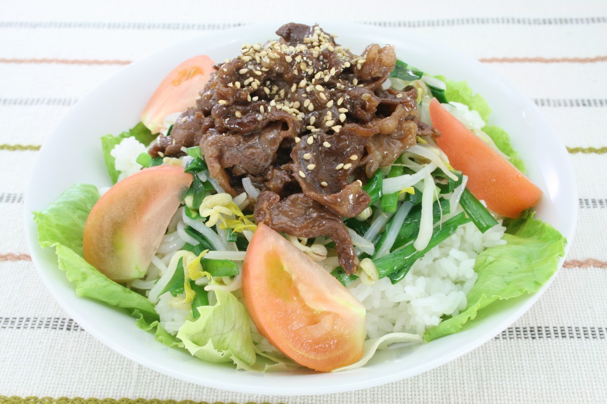 フライパンに油を熱し、肉を広げながら入れて焼き、火が通ったら自然派Style焼肉のたれをからめる。 - 皿にレタスを敷いてご飯を盛り、①をのせてその上に2をのせる。