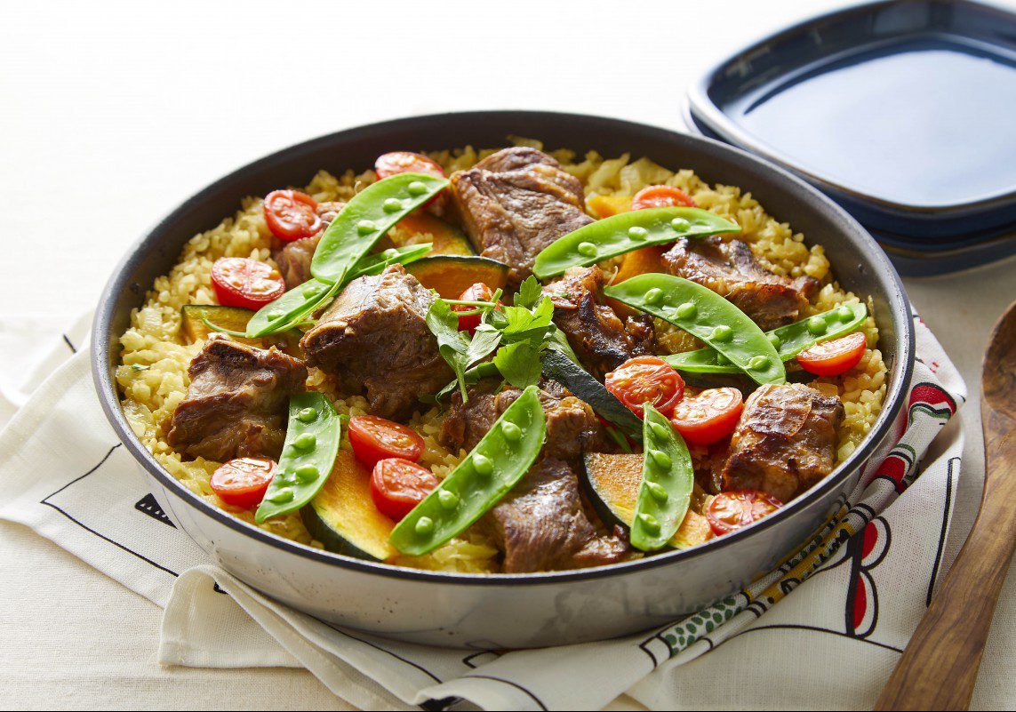 スペアリブで炊き込みカレーピラフ
