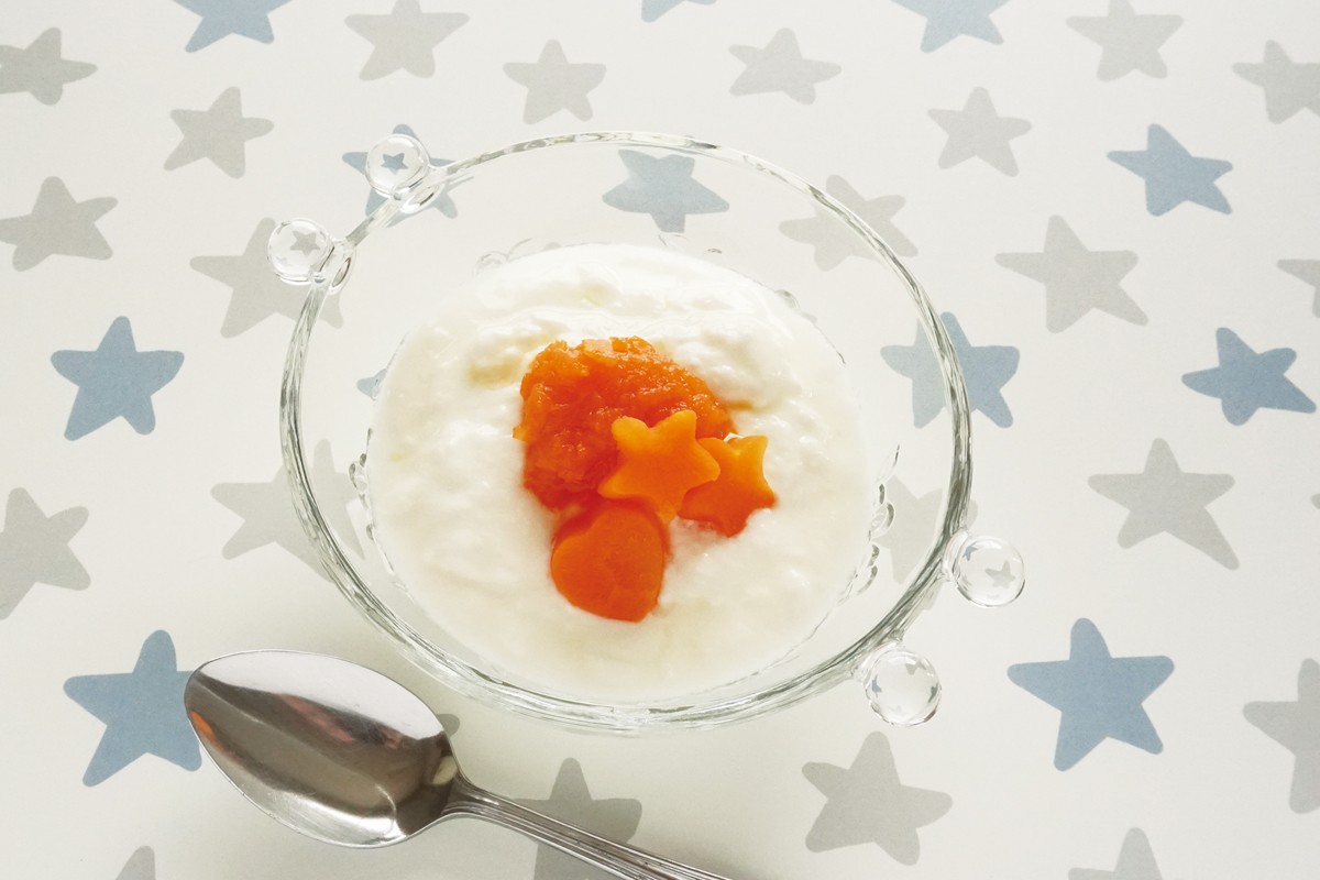 赤ちゃんには・・・離乳の進み具合に合わせてすりつぶし、ヨーグルトと和える。