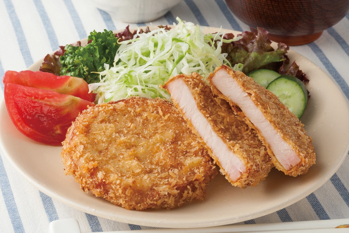 - ハムを①にくぐらせパン粉を付け、170℃の油でカラッと揚げる。