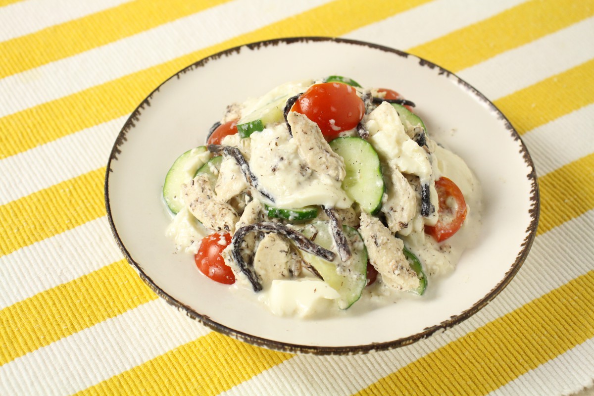 ミニトマトはヘタを取り、4等分に切る。 - ボウルにササミ、②、豆腐、Aを入れ、ザックリと混ぜ合わせる。